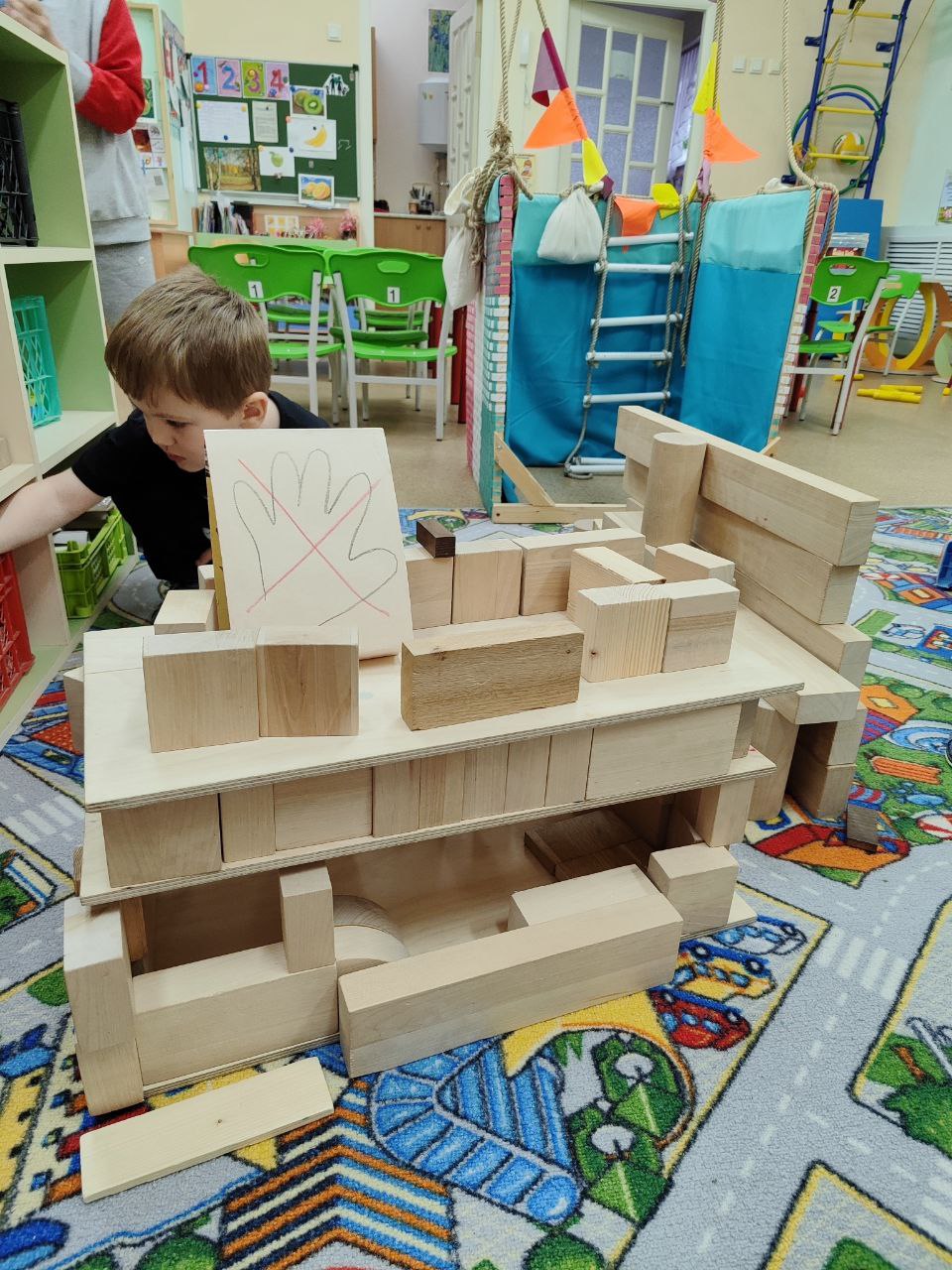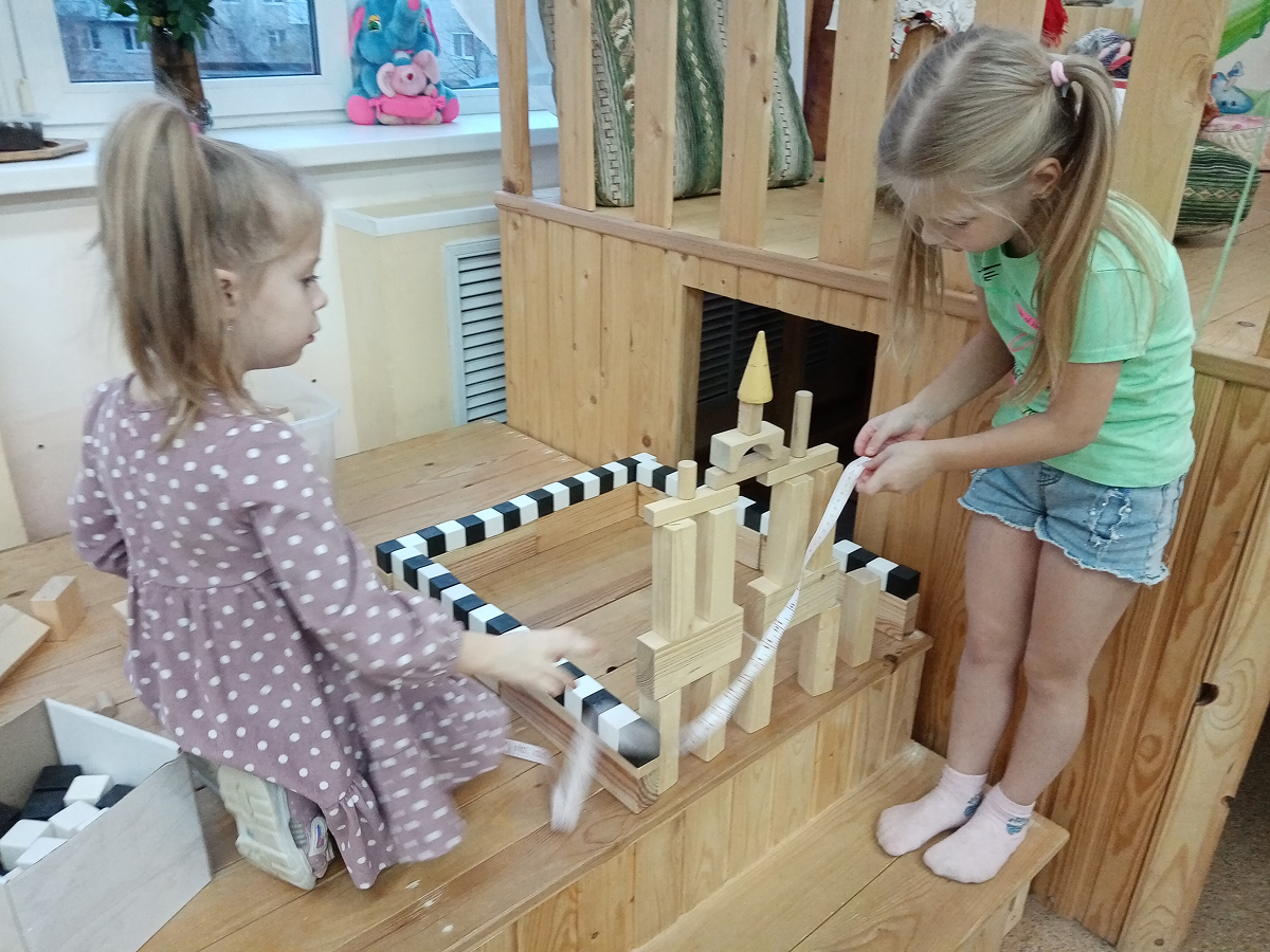 - очень удачной, на наш взгляд, оказалась практика изготовления конструктора одновременно с деревянным подиумом, на котором дети могут размещать свои постройки.