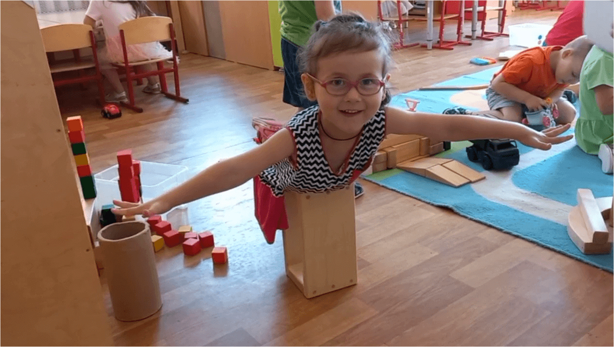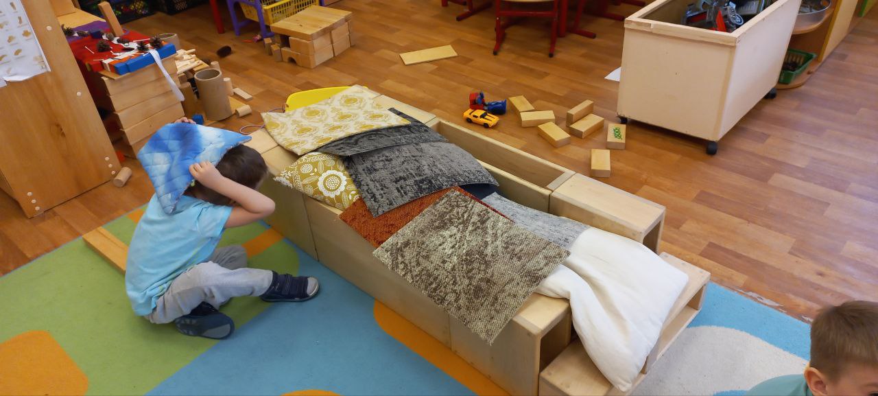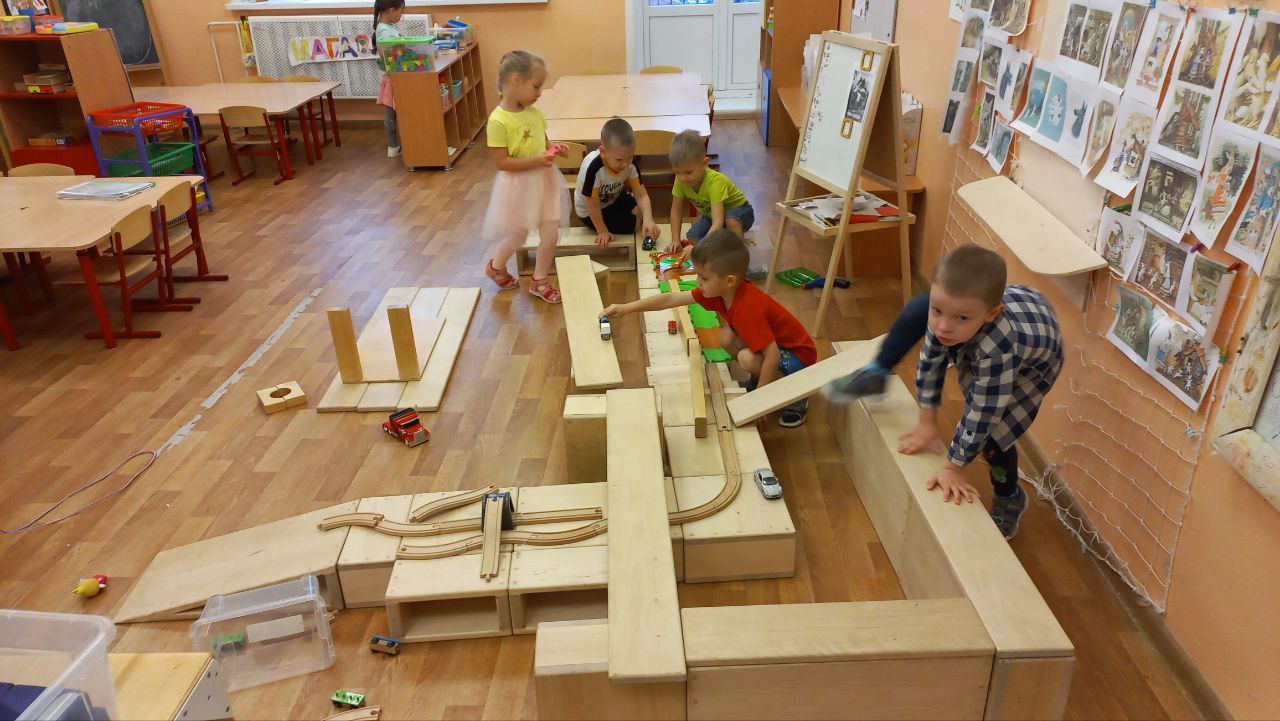 Особенно важна возможность строить в масштабе своего тела — так, чтобы в постройку можно было войти, залезть, укрыться, проползти, взобраться, передвигаться внутри. Такие крупномасштабные конструкции превращаются в настоящий опыт телесного освоения пространства, усиливая понимание «внутри — снаружи», «высоко — низко», «широко — узко» и других пространственных отношений.